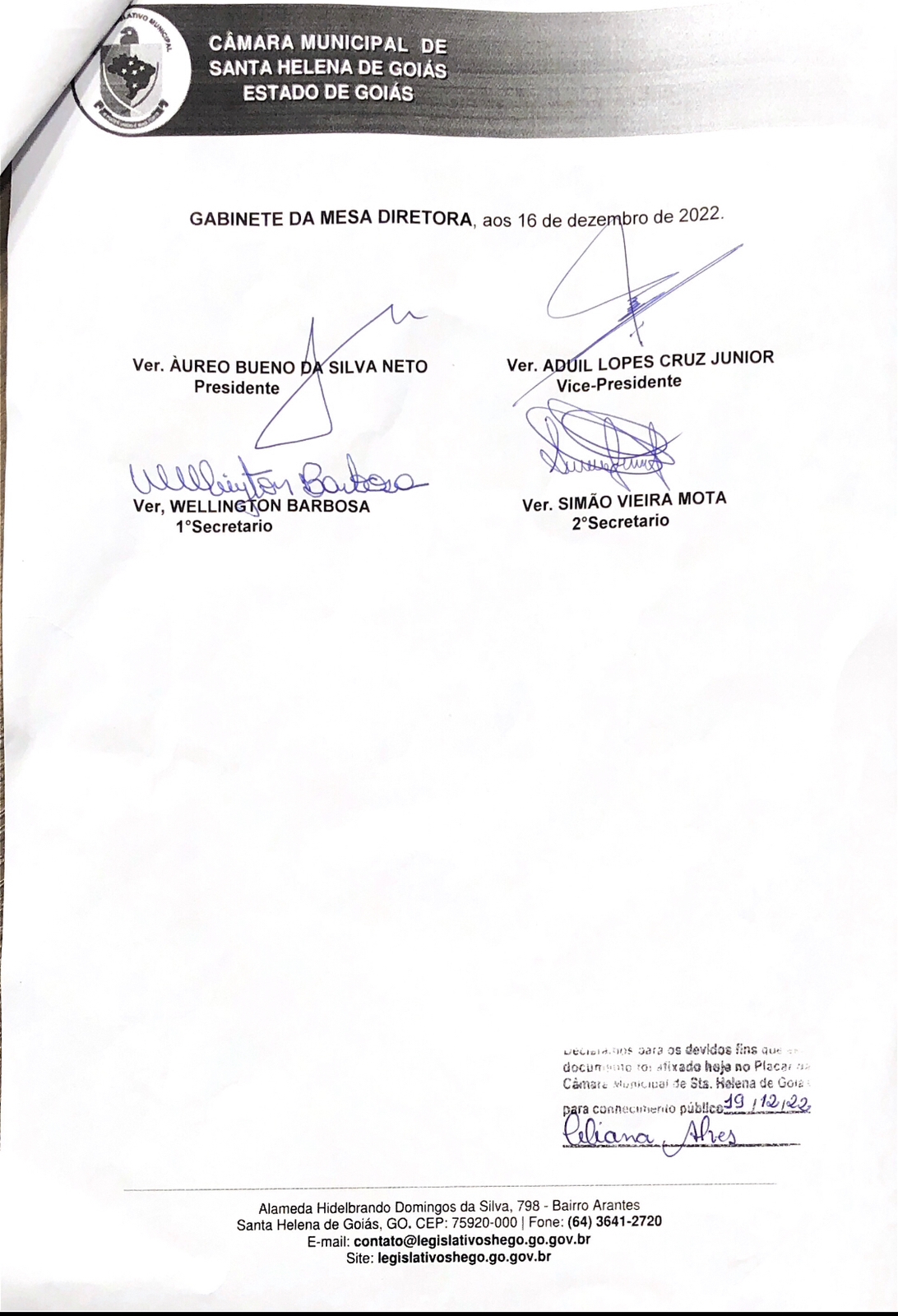 Câmara Municipal de Santa Helena de Goiás conquista 1º lugar no Ranking da Transparência do TCM-GO